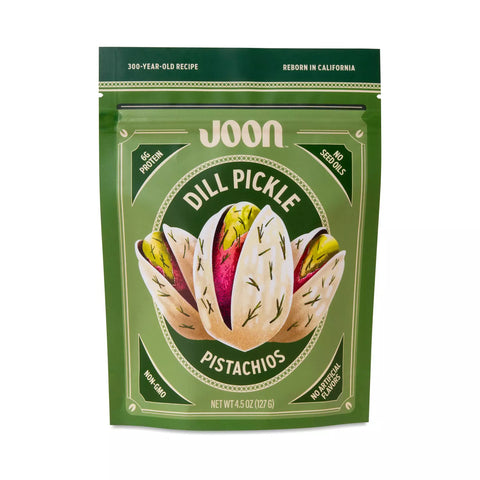 Joon’s Dill Pickle Pistachios are rooted in a 300-year-old family recipe, honoring generations of tradition and craftsmanship. Sourced from the finest pistachios, they are brined to perfection, allowing the bold tang of dill and vinegar to infuse deep into every nut, enhancing their naturally rich, nutty flavor. Their unique process creates a creamy, colossal crunch—a texture unlike any other. With no seed oils, artificial flavors or dyes, these pistachios deliver pure, satisfying indulgence in every bite. Perfect for snacking, adding to charcuterie boards, or elevating your favorite dishes.